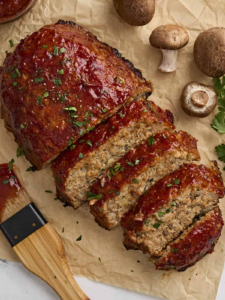 This easy Turkey Mushroom Meatloaf is moist, flavorful, and smothered in a tangy BBQ tomato glaze. A...