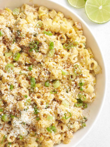 This easy Elote (Street Corn) Pasta Salad is made with smoky corn, zesty lime, and creamy queso...